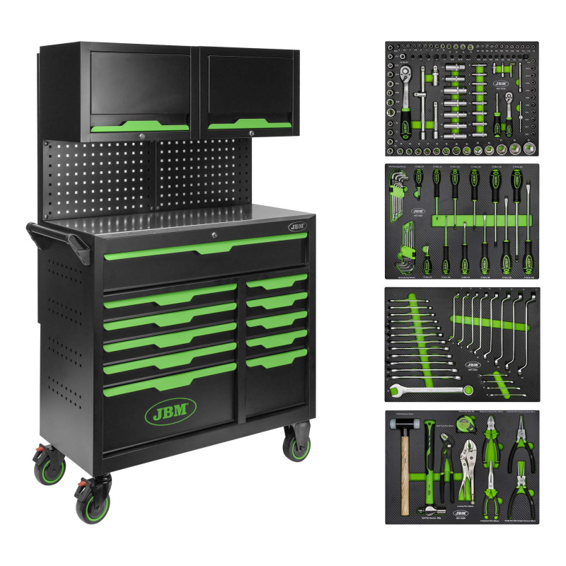 CARRINHO DE FERRAMENTAS COM 7 GAVETAS - VERDE + CHAVE DE IMPACTO SEM ESCOVAS A BATERIA 1/2" 1000NM