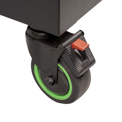 Rodas Ø 127mm, 5x2": 2 rodas giratórias com travão, 2 rodas fixas.