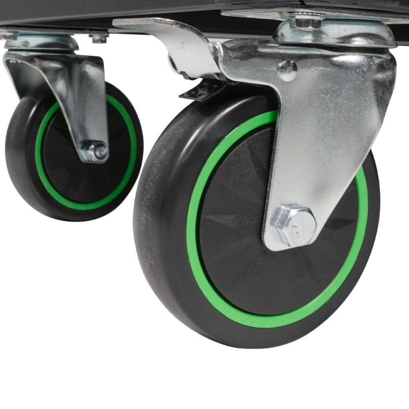 Rodas Ø 127mm, 5x2": 2 rodas giratórias com travão, 2 rodas fixas.