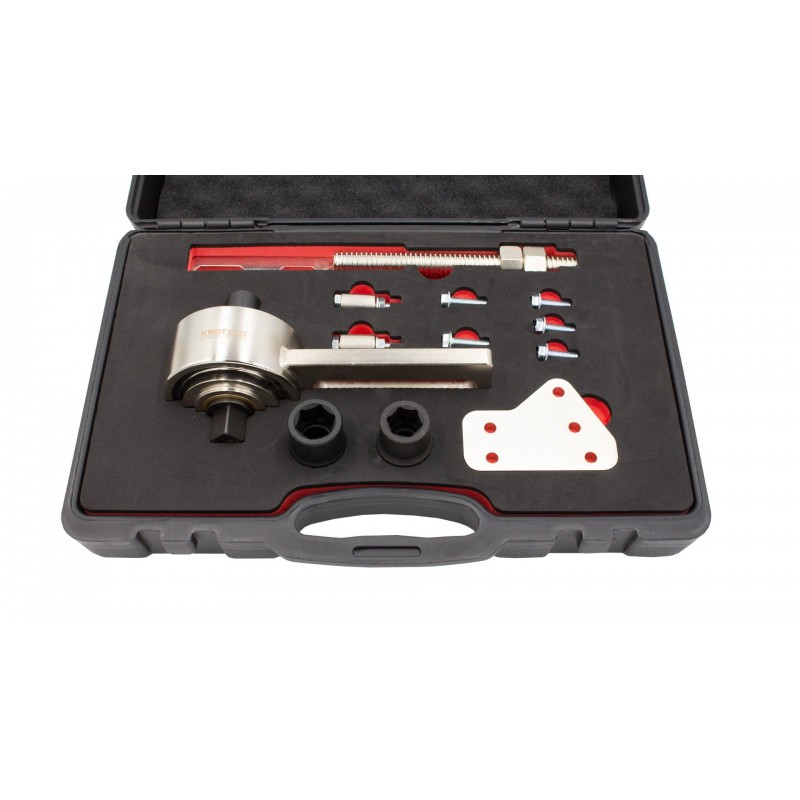 • Este coniunto desmultiplicador de torque permite que a posição de montagem correta e a sequência de aperto sejam aplicadas aos parafusos da polia da cambota