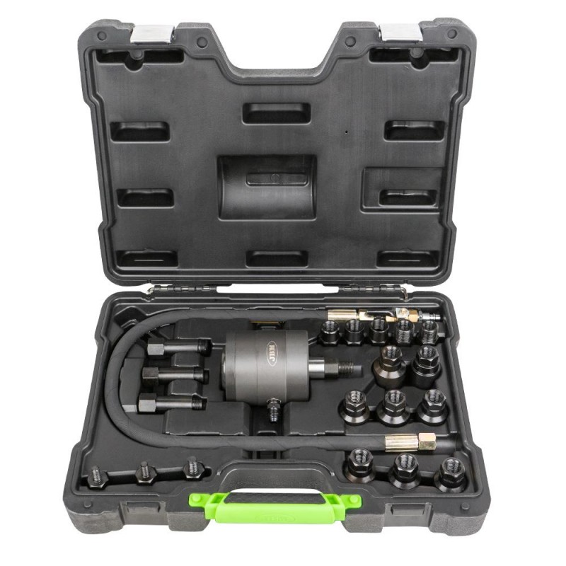 Através de uma força pneumática, os injectores podem ser retirados. Estão disponíveis vários adaptadores, compatíveis com os modelos diesel.