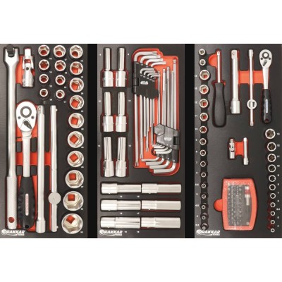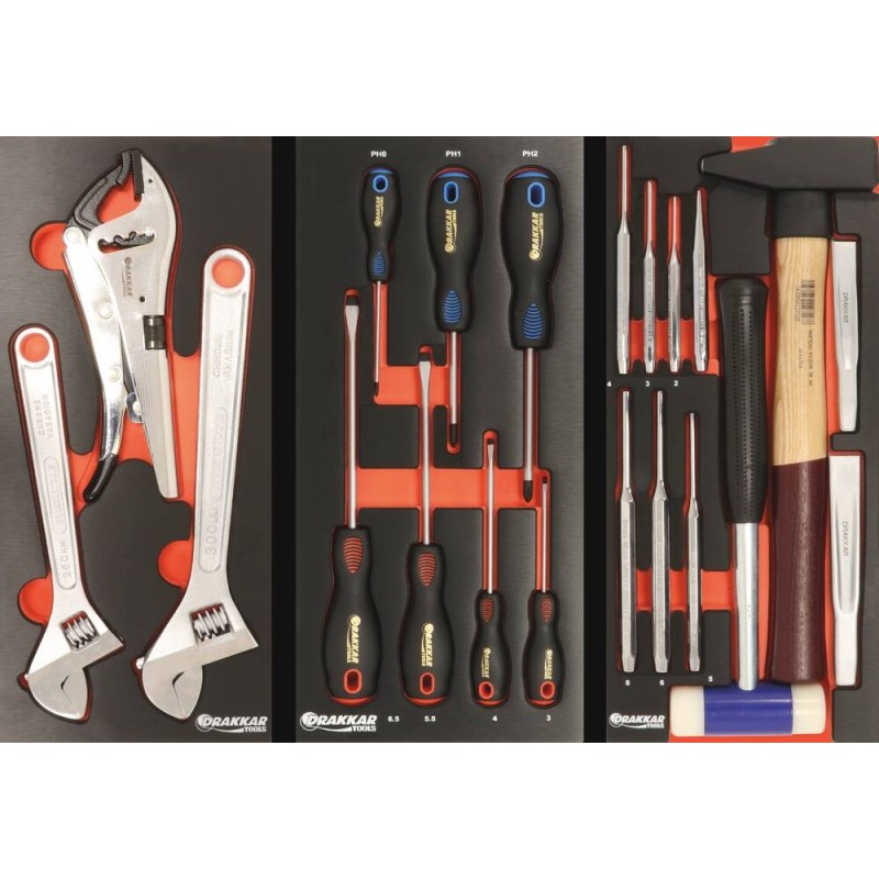 Superfície de trabalho em ABS com reentrância para 6 chaves de fenda, 2 sprays.