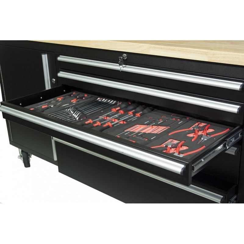 Superfície de trabalho em ABS com reentrância para 6 chaves de fenda, 2 sprays.