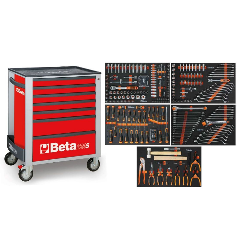Superfície de trabalho em ABS com reentrância para 6 chaves de fenda, 2 aerossóis.