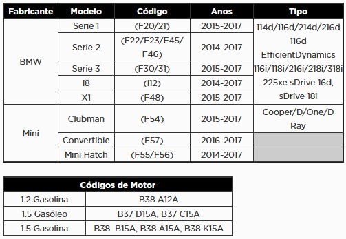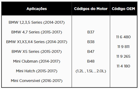 Aplicações motores: B38, (1.2 e 1.5) B48, (2.0), B58 (3.0)