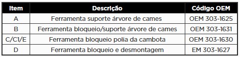 Descrição: Projetado para segurar a árvore de cames, cambota, bomba de óleo e água, polias e rodas dentadas enquanto desaperta e aperta os parafusos de fixação.