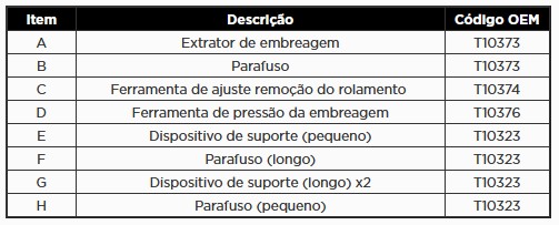 • Este kit é necessário para definir a sincronismo do motor ao efetuar a substituição da correia