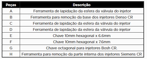 • Adequado para injetores Bosch Denso e Siemens Cr