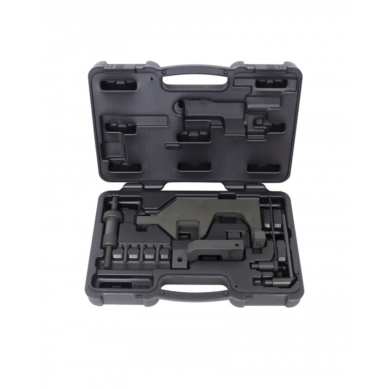 • Uma vez o motor removido, o kit de ferramentas permite que o utilizador bloqueie a árvores de cames e a cambota em posicão sincronismo para substituicão da corrente
