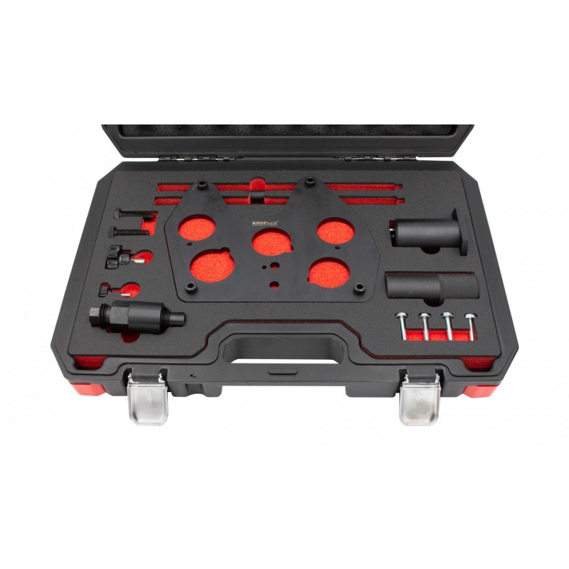Descrição: Este Kit de sincronização fornece as ferramentas necessárias para bloquear a árvore de cames e a cambota dos motores listados, permitindo que as correntes de acionamento da árvore de cames sejam removidas e a sincronização seja ajustada ou verificada