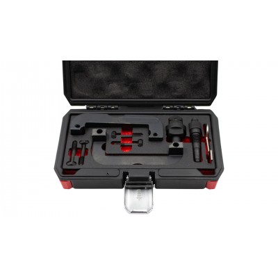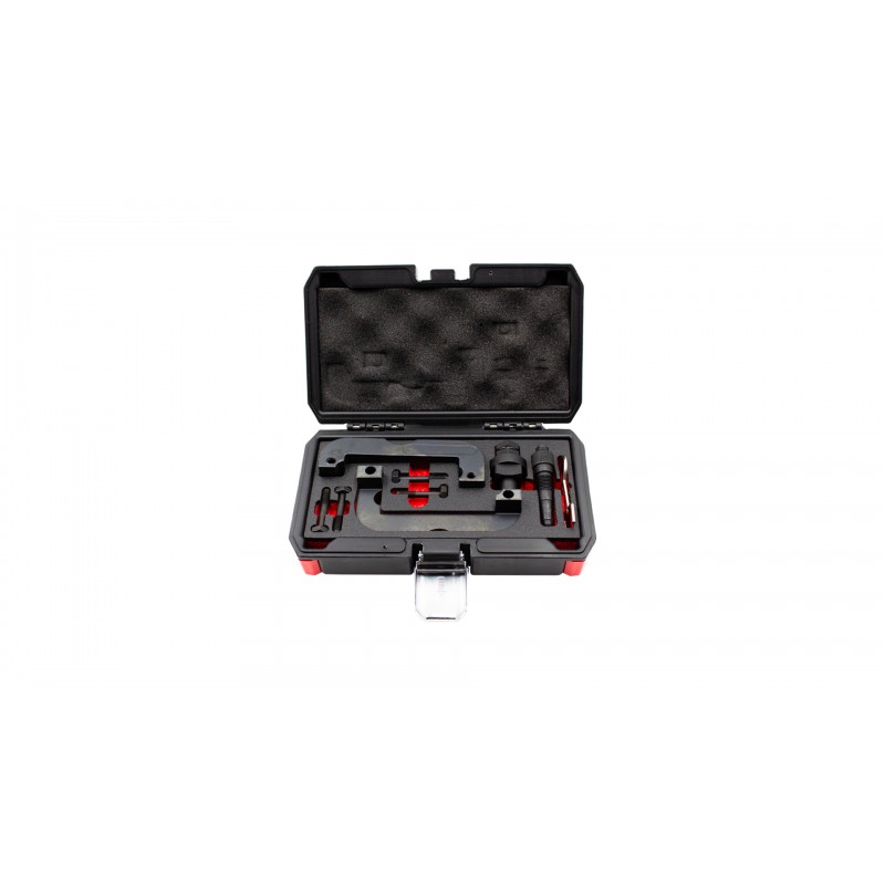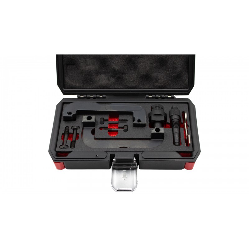 Descrição: Conjunto especializado para verificar o sincronismo e bloquear a cambota em veículos com motores a diesel após 2014 BMW / Mini 1,5 litros de 3 cilindros (B37) e 2,0 litros de 4 cilindros (B47).