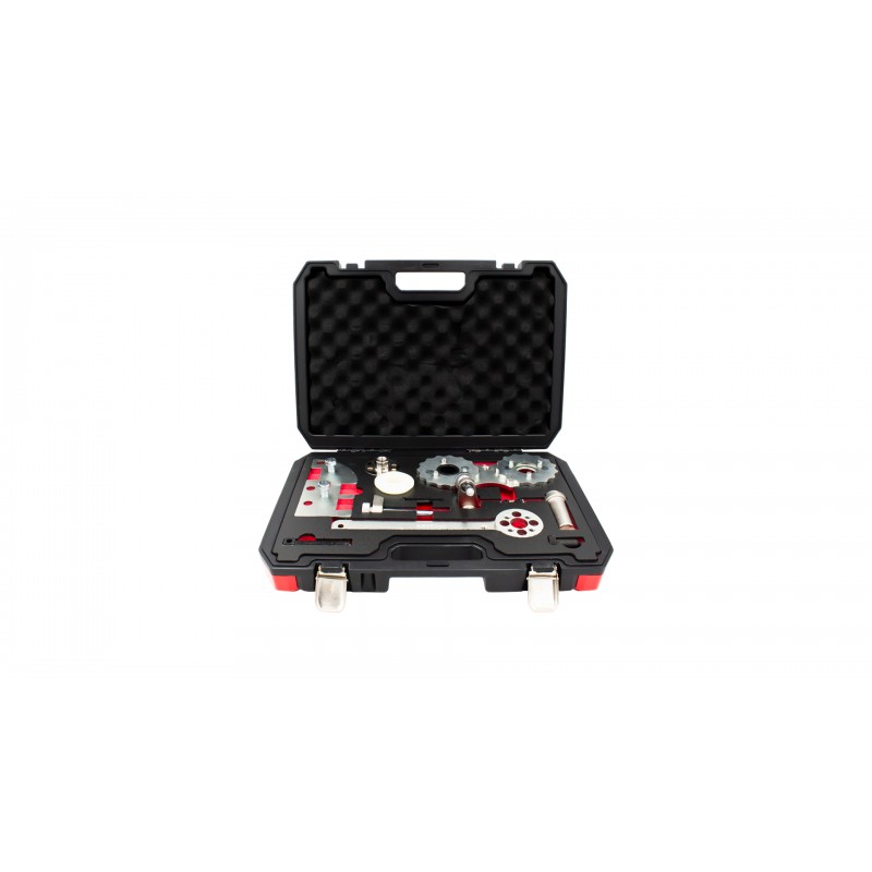 Descrição: Conjunto especializado para verificar o sincronismo e bloquear a cambota em veículos com motores a diesel após 2014 BMW / Mini 1,5 litros de 3 cilindros (B37) e 2,0 litros de 4 cilindros (B47).